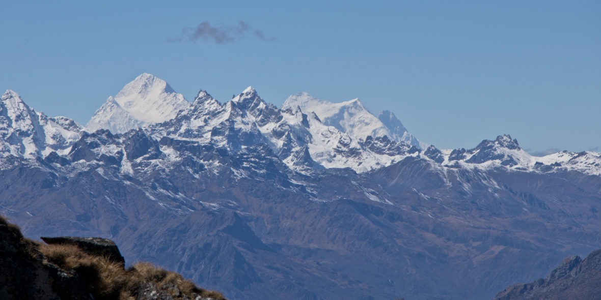 The Kanchenjunga North Base Camp (Pangpema) and Kanchenjunga South BC (Oktang), also called the Kanchenjunga Circuit trek, is one of the most magnificent long tea house treks in Nepal! Still less trekked than other regions of Nepal, the Kanchenjunga region offers some of the best trekking in Nepal. The trek quickly works its way up through thick forests and pleasant villages, through rhododendron, fir and larch into spectacular high alpine valleys that just keep going and going. No crowds, just mountains and more mountains, and all accessible from the rustic lodges. The sight of Kanchenjunga, seen from both Oktang and Pangpema are impressive, as is the north face of Jannu/Kumbhakarna, a spectacularly worthy destination itself. Kanchenjunga [8,586m] is the third highest mountain on the planet, first climbed in 1955 by Joe Brown and George Band in a team of British mountaineers. Unlike Everest and K2, the trek to its base camps has been strangely neglected with very few trekkers visiting. Kanchenjunga is the latest teahouse trek, with tea houses all being built here fairly recently, previously we only did this trek as a camping trek. Tea houses are still far more basic than the Everest or Annapurna area treks, with a rough charm of trekking several decades ago. This trek requires special restricted area permits (included) and a minimum of two people, partly the reason we are offering this locally lead trek. We have designed this trek with ample acclimatisation time, allowing you to really enjoy the high alpine areas when we get up there. No unnecessary headaches or evacuations here! NOTE: The Oct departure is 3 days longer – 27 days to make it possible to try climbing an amazing 6K viewpoint at Pangpema