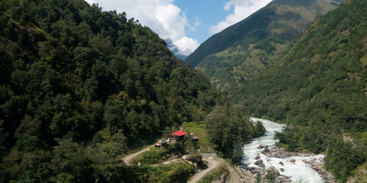 Prior to 2020 we trekked this section however now the very much under construction highway to Tibet heads up valley to Sukethum. Thankfully we branch off when we cross the river to Sekathum as the road construction continues up the main valley heading towards Olangchung Gola and Tibet. We don’t hear or see the road again as we head up the valley to Ghunsa and Pangpema.